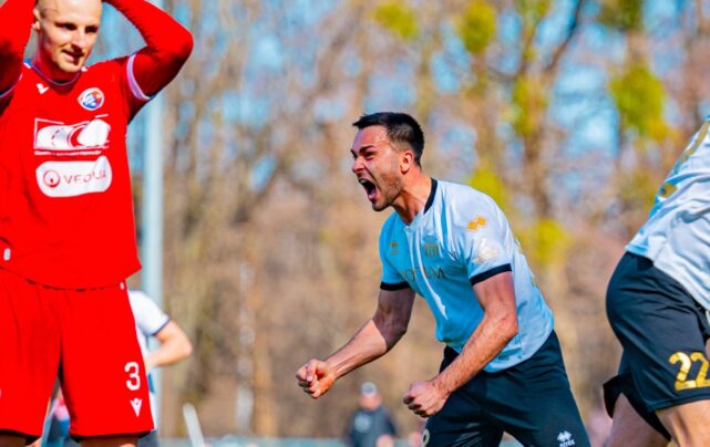 Zverenci Dušana Tótha sa v druhú marcovú nedeľu na umelom trávniku ujali vedenia už v 3. minúte. Najlepší strelec MONACObet ligy Jakub Sylvestr využil zaváhanie súpera, vystihol spätnú prihrávku, obhodil si brankára a poslal loptu do prázdnej brány – 0:1. Pridal tak svoj šestnásty presný zásah v druholigovej sezóne.
