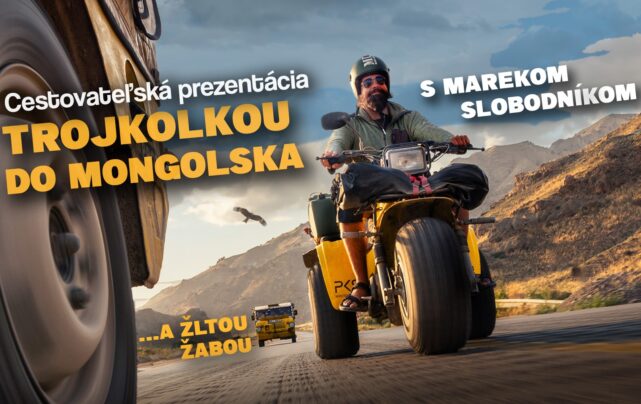 „Príďte si vypočuť rozprávanie o tom, ako sme sa s obojživelnými vozidlami dostali až do ďalekého Mongolska. Z Európy naprieč Áziou cez najšialenejší štát, v akom sme kedy boli, Turkmenistan. Dozviete sa, prečo sme hranice do Uzbekistanu prešli na lane. Prečo sa Honda ATC prestala vyrábať a prečo na nej nikto nikdy nikde nebol. Porozprávame sa o tom, ako to vyzerá práve teraz v Rusku a čo sa nás pýtali na hraniciach. Spoznáte neskutočnú krásu pohoria Altaj. Uvidíte nielen to, ako sme sa na našich vozidlách plavili, ale aj sa topili. Ako sme boli slovami bez seba z nekonečnej krásy Mongolských plání.“ Nič z toho pritom nebolo pre Mareka tak nádherné, ako to čo zažil doma, hneď po návrate… Siedmi cestovatelia, tri mesiace na cestách, 14-tisíc kilometrov a nekonečne veľa problémov počas celej cesty „TROJKOLKOU DO MONGOLSKA“.