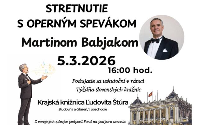 Zvolenská Krajská knižnica vás pozýva na stretnutie so slovenským operným spevákom Martinom Babjakom, ktoré sa uskutoční vo štvrtok, 5. marca o 16-tej hodine v priestoroch študovne a čitárne na prvom poschodí.