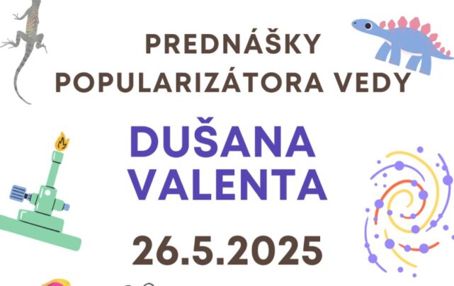 Krajská knižnica Ľudovíta Štúra pozýva do svojej študovne na sériu štyroch vzrušujúcich prednášok pre žiakov základných škôl, ktoré sa uskutočnia v pondelok, 26. mája od 8.30 hod. Prednášať bude popularizátor vedy a spisovateľ Dušan Valent, ktorý pútavou formou približuje témy ako kritické myslenie, vesmír, vznik Zeme, dejiny života, ranné dejiny ľudstva a svet zvierat. Jeho prednášky ponúknu fascinujúci pohľad na svet okolo nás aj do našej vlastnej minulosti.