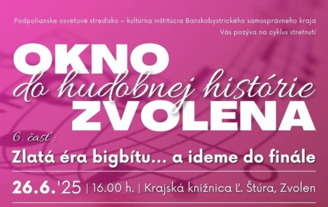 Krajská knižnica vo Zvolene pozýva do svojej študovne na 6. časť spomienkového cyklu stretnutí Okno do hudobnej histórie Zvolena, ktoré pripravuje Podpolianske osvetové stredisko pod názvom Zlatá éra bigbítu… a ideme do finále.