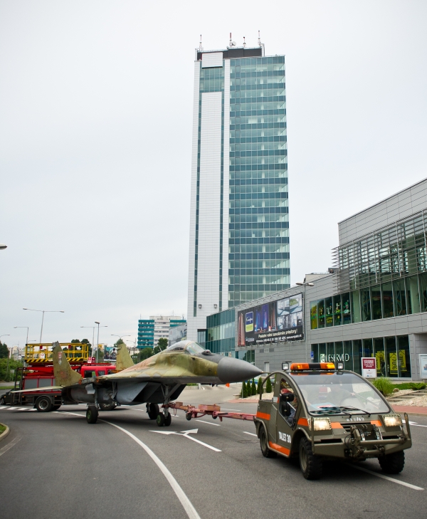 Stíhačku Mig-29 zo Sliača odparkovali pred bystrickou Europou